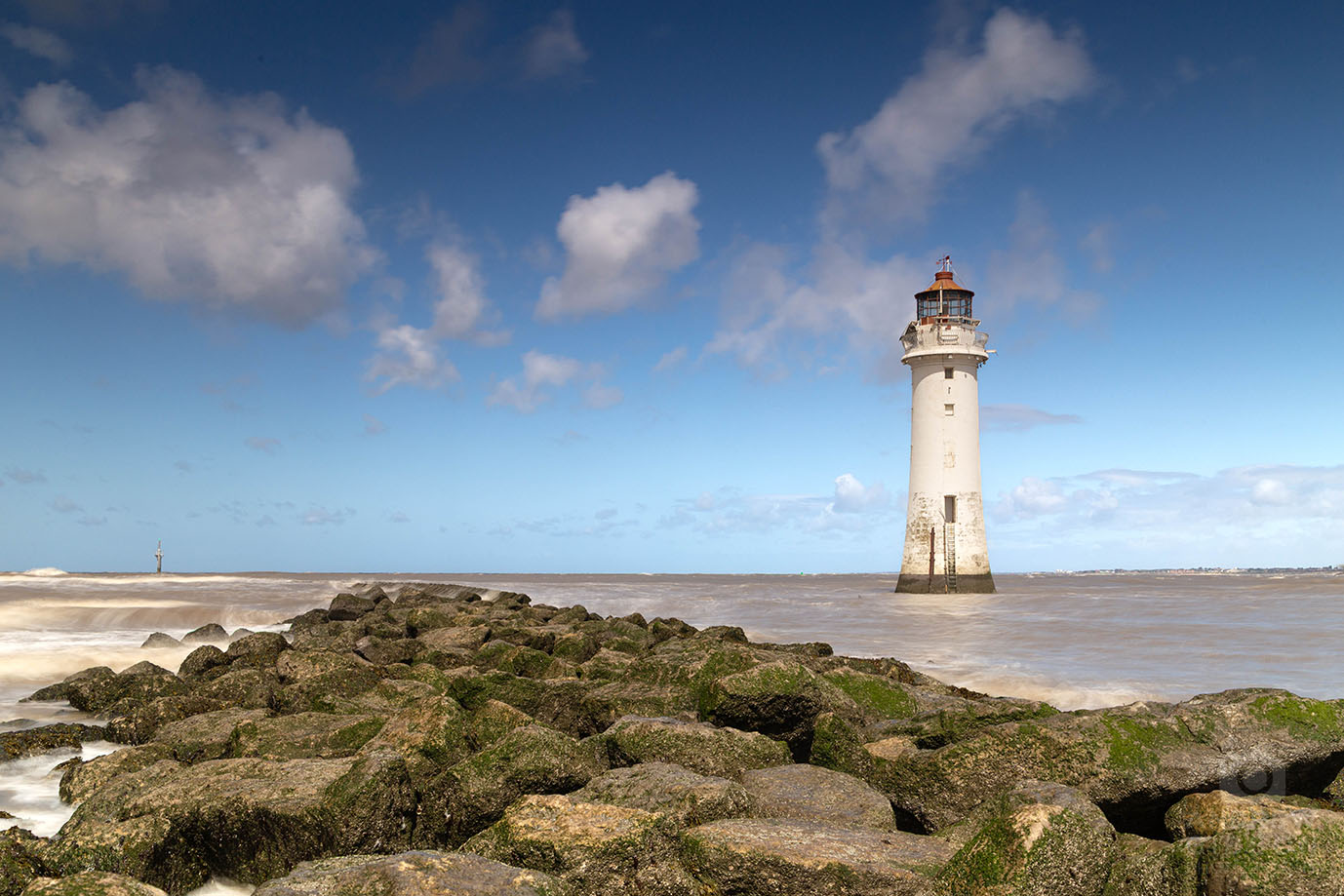 The wind was as bracing as the sun was dazzling, waves crashing down on the shoreline and sending fine sand and salt spray in every direction. It was like being sandblasted. At the other end of the promenade the most notable feature (aside from the unusual fortress) is New Brighton lighthouse, which I shot on a long exposure and which turned out okay.